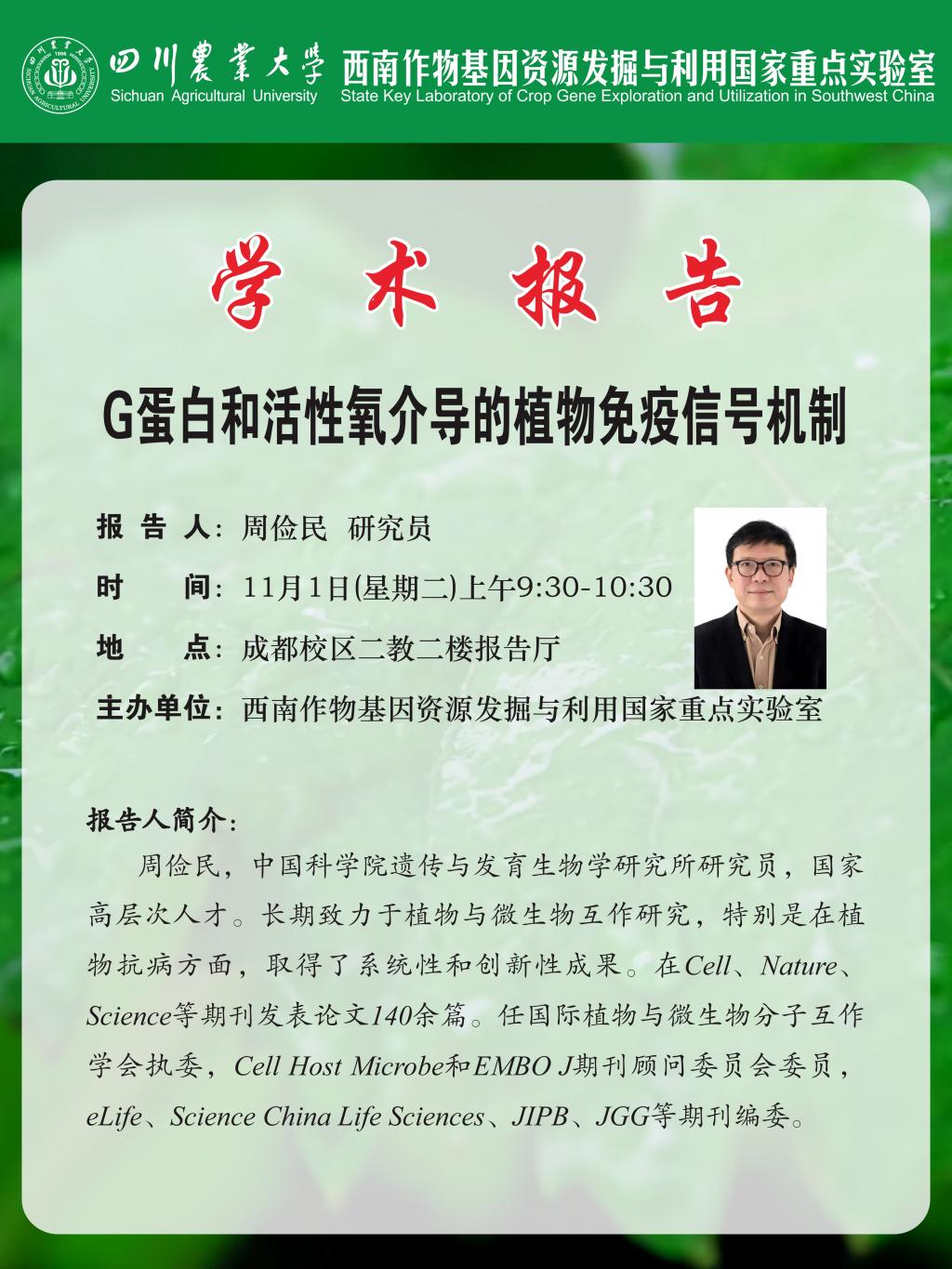 报告题目:G蛋白和活性氧介导的植物免疫信号机制