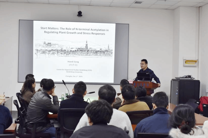 12月1日,德国海德堡大学博士后巩孝帝受邀来校,在科技园B108会议室作了题为“Start Matters: The Role of N-terminal Acetylation in Regulating Plant Growth and Stress Responses”(开端的重要性:N端乙酰化在调控植物生长与胁迫响应中的作用)的学术报告,为在场师生带来了一场内容丰富、见解深刻的学术分享。