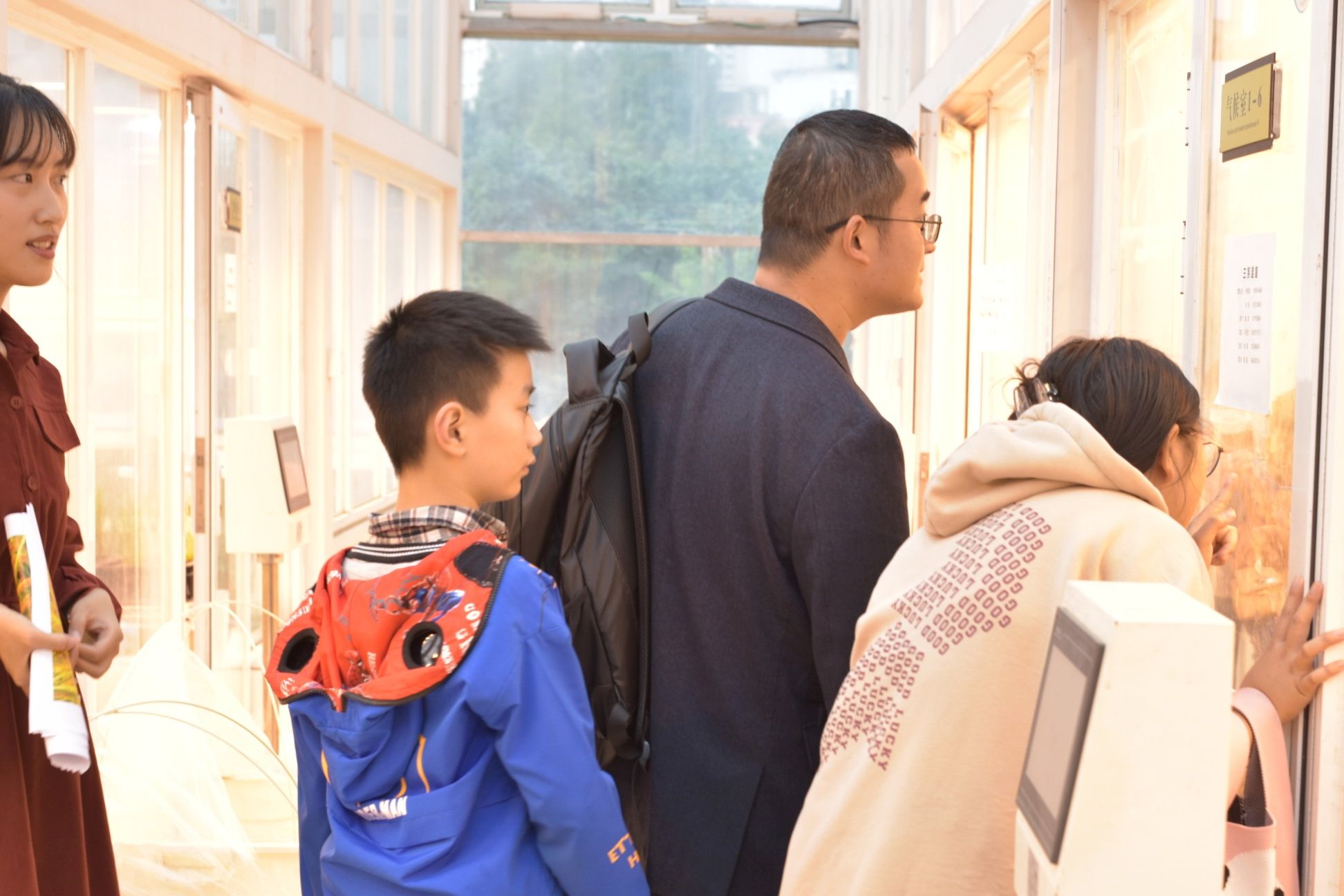 第三站是参观水稻培养温室。研究生会志愿者以“作物粮食知多少”为主题为学生进行科普宣传。志愿者将知识讲解与猜谜互动结合,为学生们上了生动的一课。