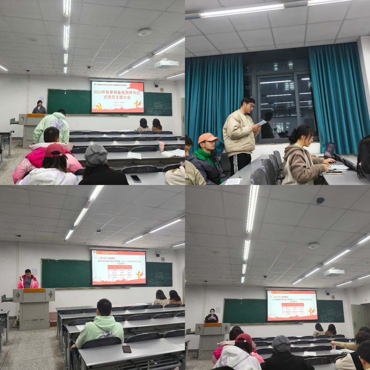 支部大会按照相关流程顺利开展,会议通过并同意接收田艾灵和杨梦林2位同志为中共预备党员;通过王嘉正、程子峻、邓怡馨和刘晓倩四位同志转正申请,并同意四位同志按期转正,成为中共正式党员。