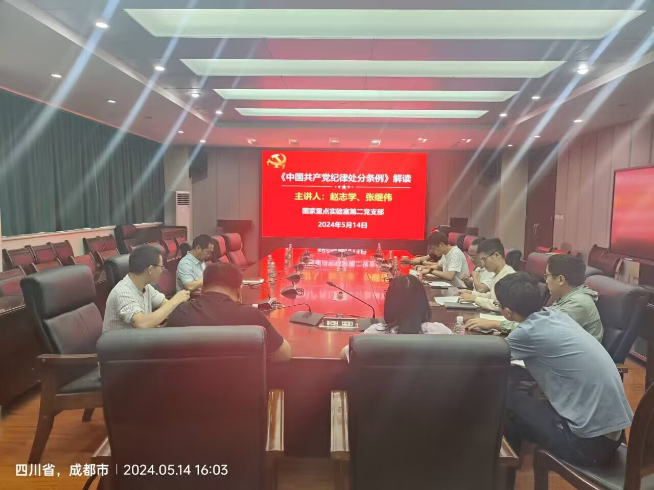 5月14日下午,国家重点实验室教职工第二党支部在成都校区2教201会议室开展了党纪学习教育交流会,支部全体党员参会,支部副书记赵志学主持会议。