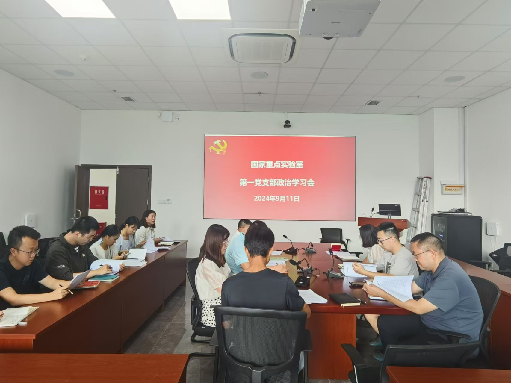 9月11日,国家重点实验室教职工第一党支部14名党员齐聚科技园B108会议室,开展了2024-2025学年度第一次组织生活会。支部书记贺闽带领支部党员一起学习了习近平总书记在中共中央政治局第十五次集体学习时强调的“贯彻落实新时代党的建设总要求进一步健全全面从严治党体系”讲话精神,以及《新时代新征程中国共产党的使命任务》重要文章。支部副书记唐永严带领党员同志一起对照原文,逐条学习了《中国共产党不合格党员组织处置办法》和中共四川省委组织部印发的《进一步规范主题党日活动加强党员经常性教育的九条措施》通知文件。