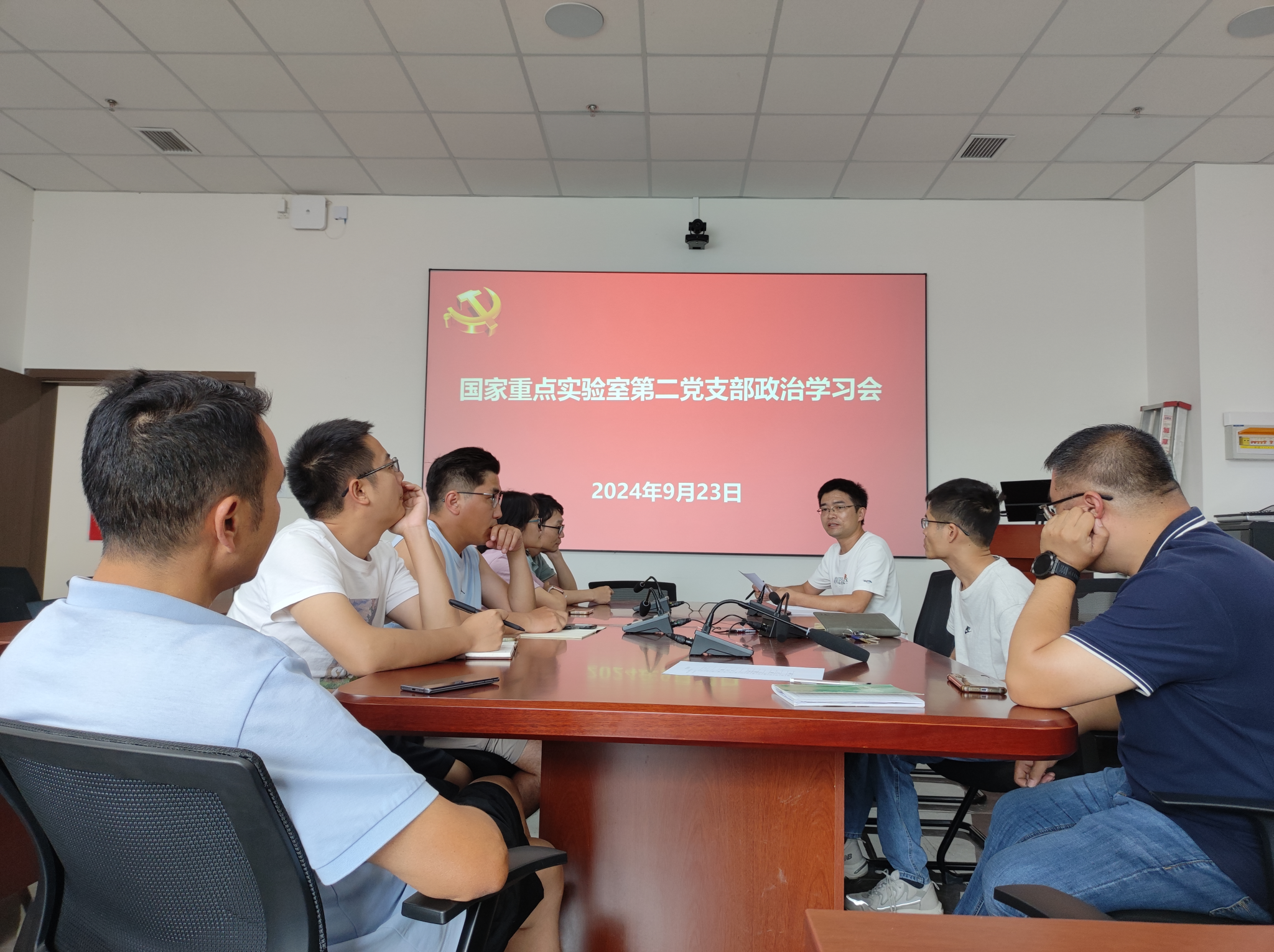 9月23日下午,国家重点实验室教职工第二党支部在科技园B108会议室召开了本学期第二次组织生活会,主题为学习贯彻党的二十届三中全会精神。会议由支部副书记赵志学同志主持。会议伊始,支部副书记赵志学同志对支部的近期工作进行了梳理,并对未来的学习与组织生活进行了详细安排。他强调,组织学习是党支部工作的核心内容,为了进一步增加党员的政治意识和使命担当,推动支部各项工作迈上新台阶,支部将严格执行全体党员轮流领读学习制度,并继续保持高标准、严要求,确保全体党员在日常工作中真正做到“知行合一、学以致用”,进一步提升党支部的凝聚力。