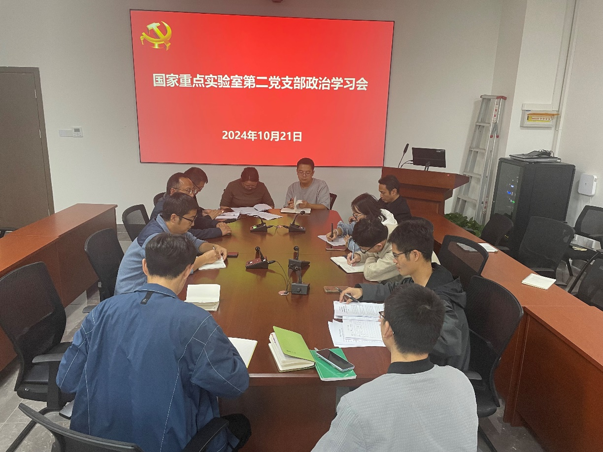 10月21日,国家重点实验室教职工第二党支部在科技园B108会议室开展组织生活学习会。会议主要内容为学习贯彻习近平总书记在全国教育大会上的重要讲话精神和大会精神,落实立德树人根本任务,积极推进教育强国建设的战略目标。
