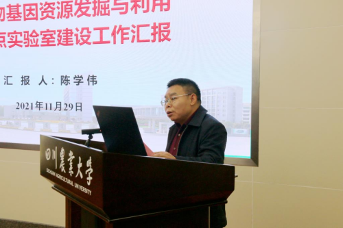 实验室主任陈学伟作2021年度工作进展报告,从实验室的建设历史背景、建设实施方案、年度工作开展情况、以及未来五年规划等方面,向与会专家做了详细汇报。他介绍了实验室的学术委员会、管理委员会、实验室主任委员会、实验室部门等组织架构,以及科研人员、实验技术人员和管理人员的队伍构成,并就水稻、玉米、麦类和特色作物(油菜、大豆、薯类等)等作物优异基因资源发掘、作物与有害生物互作、作物环境响应与生理、作物种质创新与品种设计4个研究方向的具体研究内容和未来发展规划目标,进行了详尽的阐述。