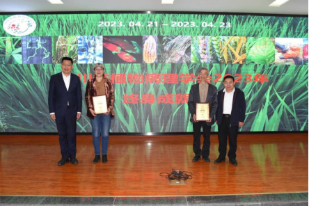 刘登才教授和陈学伟教授作为颁奖嘉宾对为四川省植物病理学发展做出重要贡献的黄云、康晓慧两位教授颁发了四川省植物病理学终身成就奖。