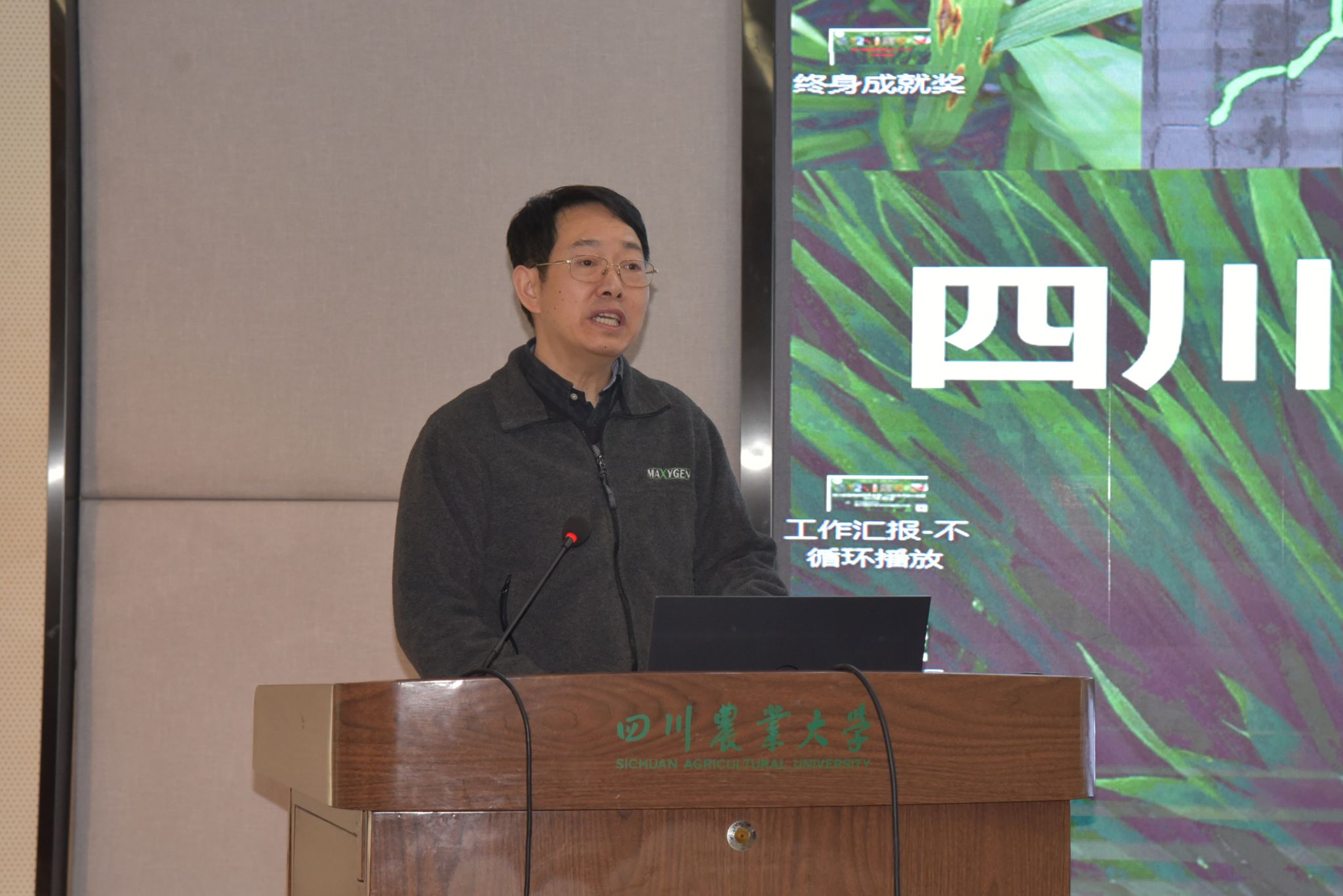 tyc5997太阳集团副校长刘登才教授致辞,热烈欢迎植病专家来校共商共谋我省植病学科发展,对植物病理学会的工作给予了充分肯定,也提出了对四川省植物病理学发展的期盼。国重实验室主任陈学伟教授致辞,提出希望通过此次会议的交流平台,促进四川省植物病理学学科的学术交流与合作。