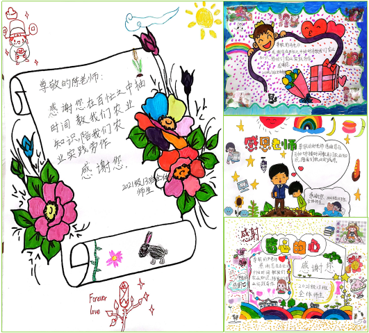 小学生们亲手绘制的感恩卡片