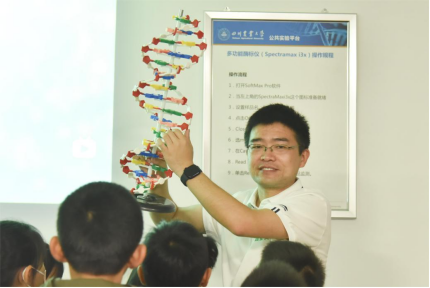 第一站,由冯丽华老师带领大家进入到大型仪器公共实验平台参观。来访的大小朋友们首先进入到了我们的科普知识宣讲微课堂,由赵志学老师带领志愿者研究生们为听众科普讲解了DNA的结构和细胞的结构、各种显微镜的使用方法及用途、作物转基因的知识以及温室种植技术等一系列大家感兴趣且存有疑惑的农业知识点。同时,陈学伟主任为大家提出了殷切嘱托,尤其勉励了孩子们能从小树立知农、爱农、从农的理想信念。纸上得来终觉浅,绝知此事要躬行。第二站,由尹俊杰老师带队前往温江惠和基地,开展了田间实践活动,在这里小朋友和家长组队进行了田间插秧体验以及抓稻花鱼活动,孩子们充分发挥动手能力,现场气氛火热,使师生和家长们深切感受到了农作之辛劳和田园之乐趣。
