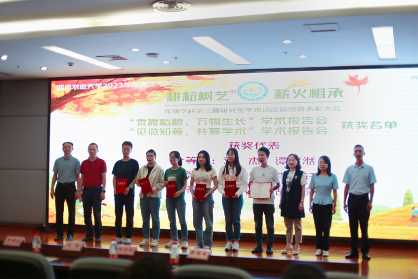 9月18日下午,由党委研工部主办,国家重点实验室、农学院、水稻研究所、小麦研究所和玉米研究所共同承办的第三届“耕耘树艺,薪火相承”2023年研究生学术活动季总结暨表彰大会在成都校区图书馆报告厅隆重举行。农学院院长王静、水稻研究所副所长李伟滔、小麦研究所副所长江千涛、玉米研究所副所长沈亚欧、国家重点实验室党委副书记戢俊臣及相关院所指导教师和200余名研究生参加活动。