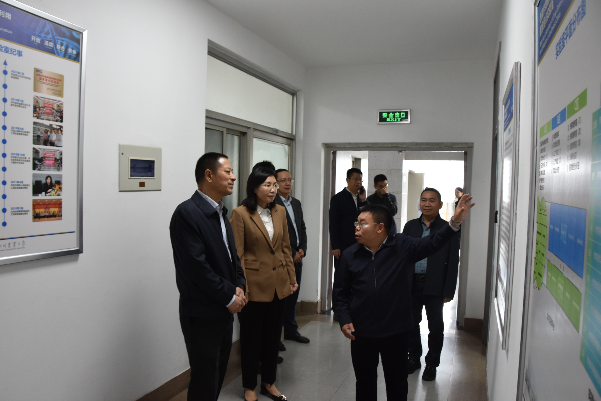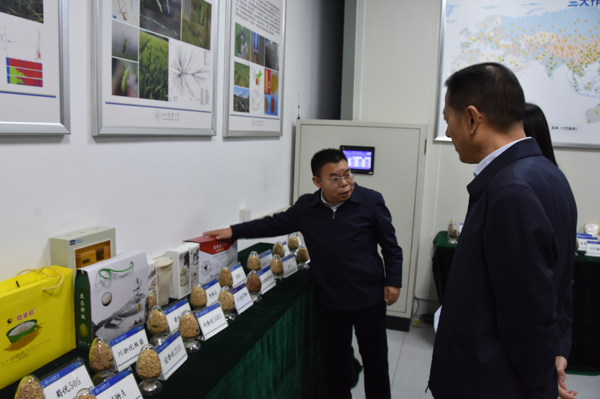 实验室主任陈学伟代表国重实验室对刘成鸣一行的来访表示热烈欢迎,并带领大家参观了种质资源库和大型仪器公共实验平台。他介绍了国家重点实验室的基本情况和发展历史,对我校在作物遗传育种、作物栽培和病原菌致病机理研究方面取得系列原创性成果进行了详细介绍。陈学伟着重介绍了超级稻“宜香优2115”,它打破了“蜀中无好米”的局面,被业内称为近年来川米品种的“一面旗帜”,同时也被国家确认为长江上游超级稻品种。