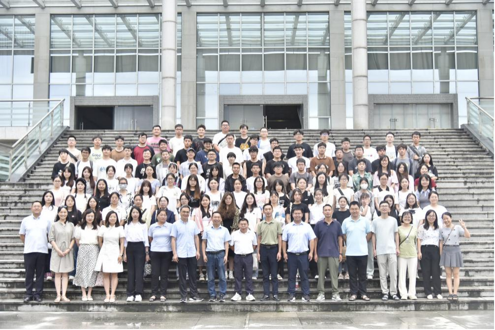 会后,全体教师和新生在二教阶梯处合影留念,在新生们步入学校的第一步上留下了难忘的回忆。