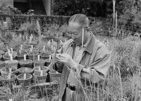 杨开渠(1902-1962),川大农学院(我校前身)迁雅独立建院后的首任院长,是“川农大精神”的开拓者与奠基人,也是新中国第一代杰出的农业教育家和水稻专家。他毕生致力于高等农业教育和水稻科研事业,最早在长江流域倡导种植双季稻,解决了连作晚稻的品种和栽培技术问题;他是世界上最早开启再生稻研究,并在生产上推广;分蘖研究填补了稻作科学的空白,提供了合理利用水稻分蘖的基础理论,为发展我国水稻生产做出了贡献。