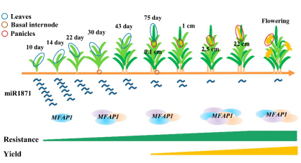 学界公认产量和抗性是农作物生产中两个相互拮抗的关键因素,提高抗性往往以降低产量为代价。针对这一瓶颈问题,近日,我校西南作物基因资源发掘与利用国家重点实验室王文明教授团队的一项研究成果就揭示了水稻miR1871b-OsMFAP1模块协同调控稻瘟病抗性和单株产量的机制,为培育具有高抗性、高产量水稻品种找到了新的突破口。