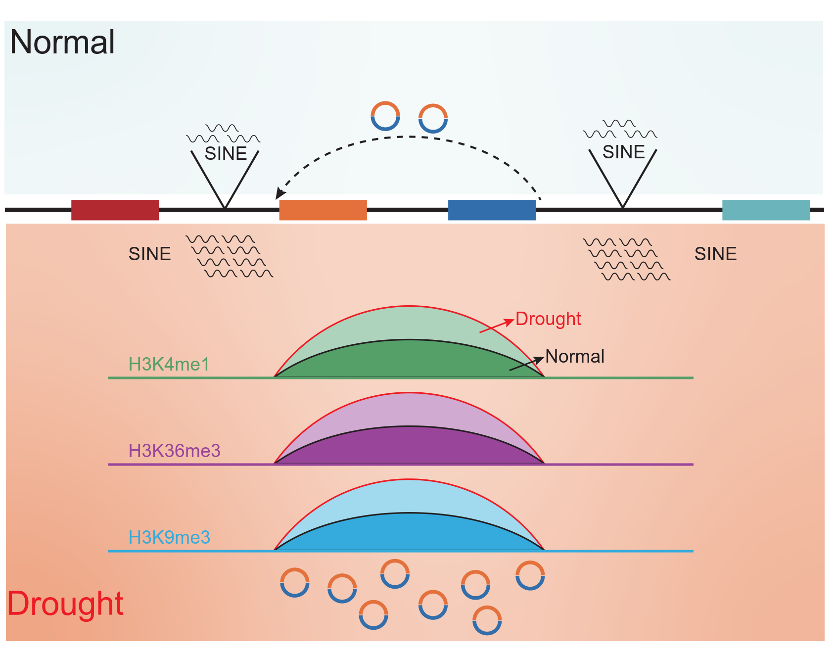 CircRNA在动植物生长发育和胁迫应答中均发挥着重要作用。然而,它们的起源和功能,尤其是在植物中的起源和功能,很大程度上仍不清楚。本研究利用耐旱和干旱敏感自交系及其衍生的重组自交系,鉴定了在充分灌溉和干旱胁迫条件下玉米根系中8790个circRNA的表达情况。其中,干旱条件下,circRNA表达个数和表达水平均显著增加。研究发现,CircRNA表达的增强与其较长的侧翼内含子和LINE逆转录转座子的富集有关。CircRNA产生基因的反向剪切(Back Splicing)位置表观遗传修饰与典型剪接显著不同。此外,产生circRNA的基因与干旱胁迫下的玉米苗期植株存活率关联程度更高。在拟南芥中过表达转录中介复合体亚基ZmMED16所表达的circRNA(circMED16),增强了拟南芥耐旱性。研究结果为理解植物应答干旱胁迫复杂的调控机制以及表观修饰对circRNA表达调控提供了新视角。