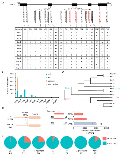 图4 OsCAT8水稻群体中基因分型