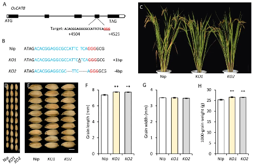 图3 OsCAT8敲除株系表型分析