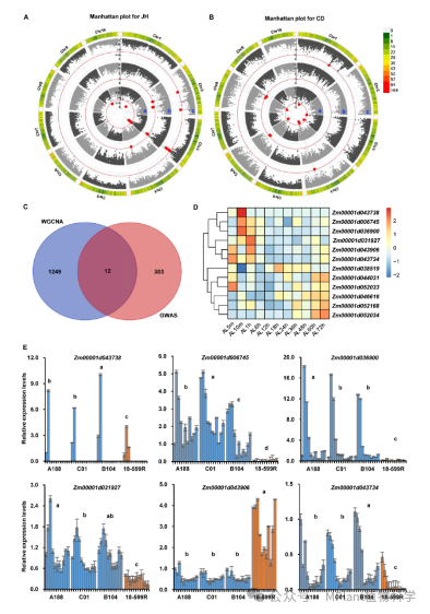图2 联合分析WGCNA和GWAS鉴定玉米农杆菌侵染率的关键基因