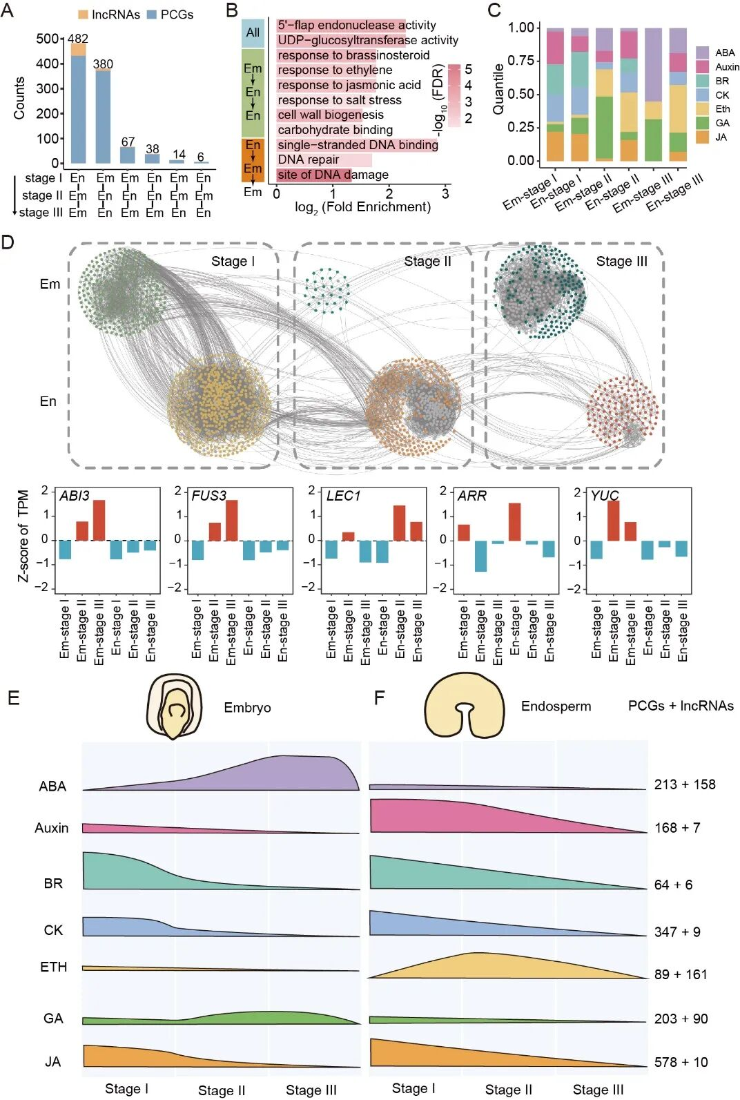 图 激素相关基因在胚与胚乳之间表达模式的动态变化